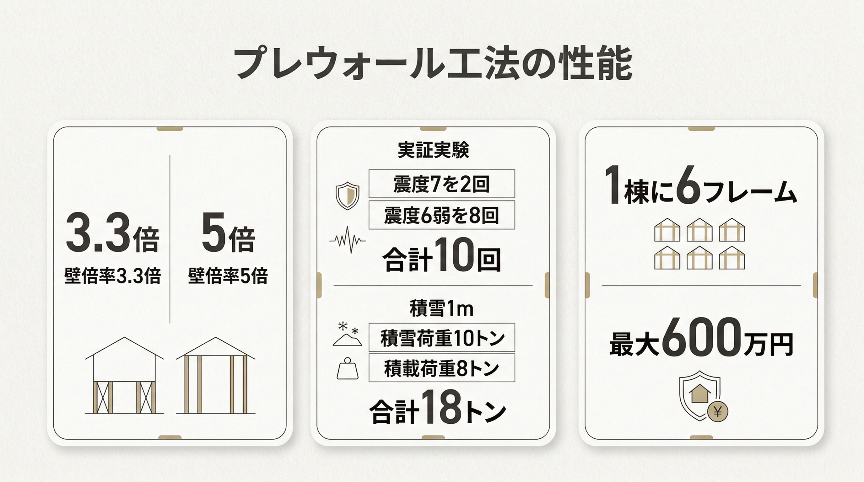 プレウォールTXを規定どおり施工された建物については、一般社団法人ハウスワランティによる最大600万円の地震性能保証が受けられる制度も整備されています。