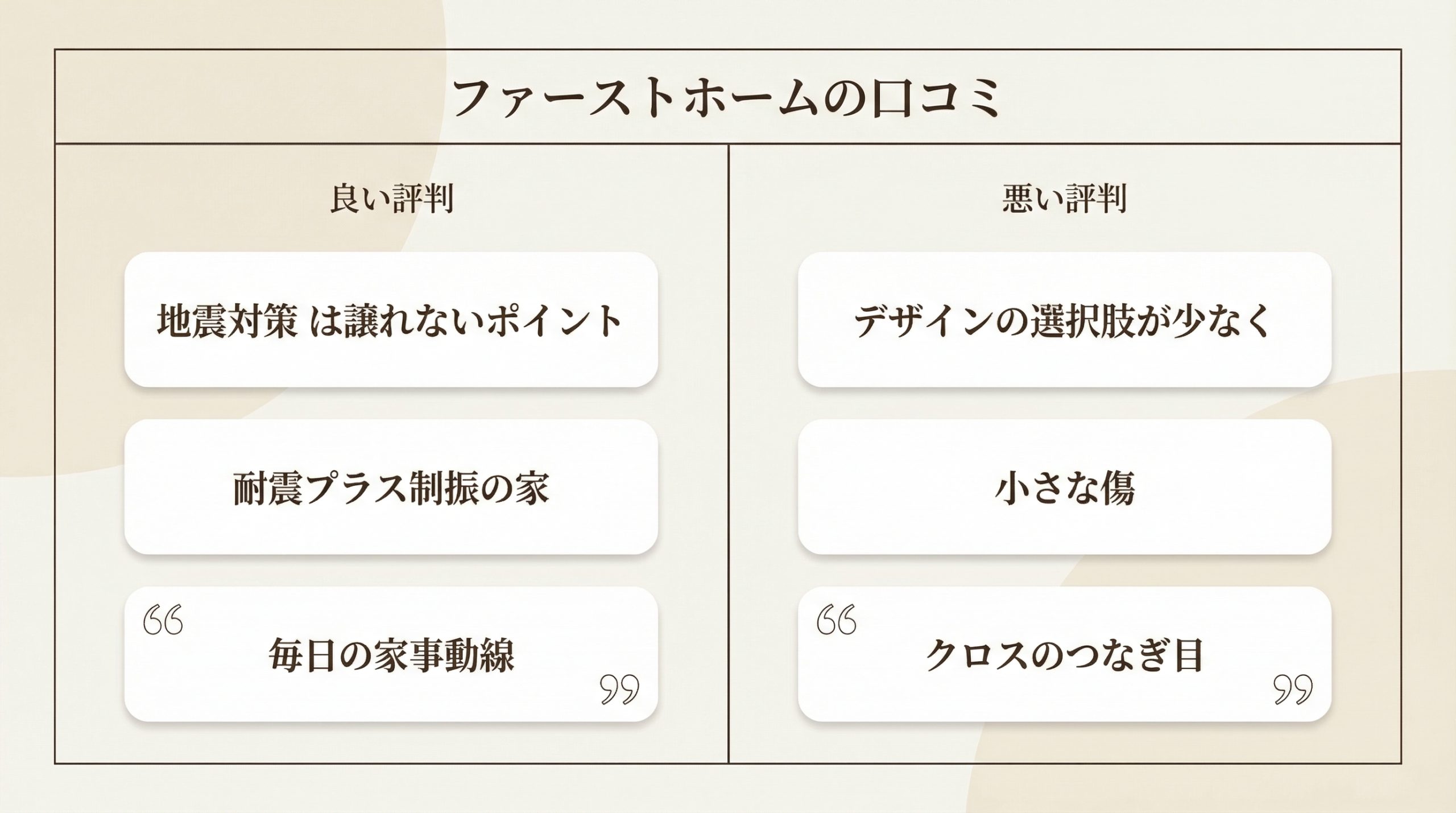 欠陥住宅は嘘!ファーストホーム122人の良い評判と悪い口コミ