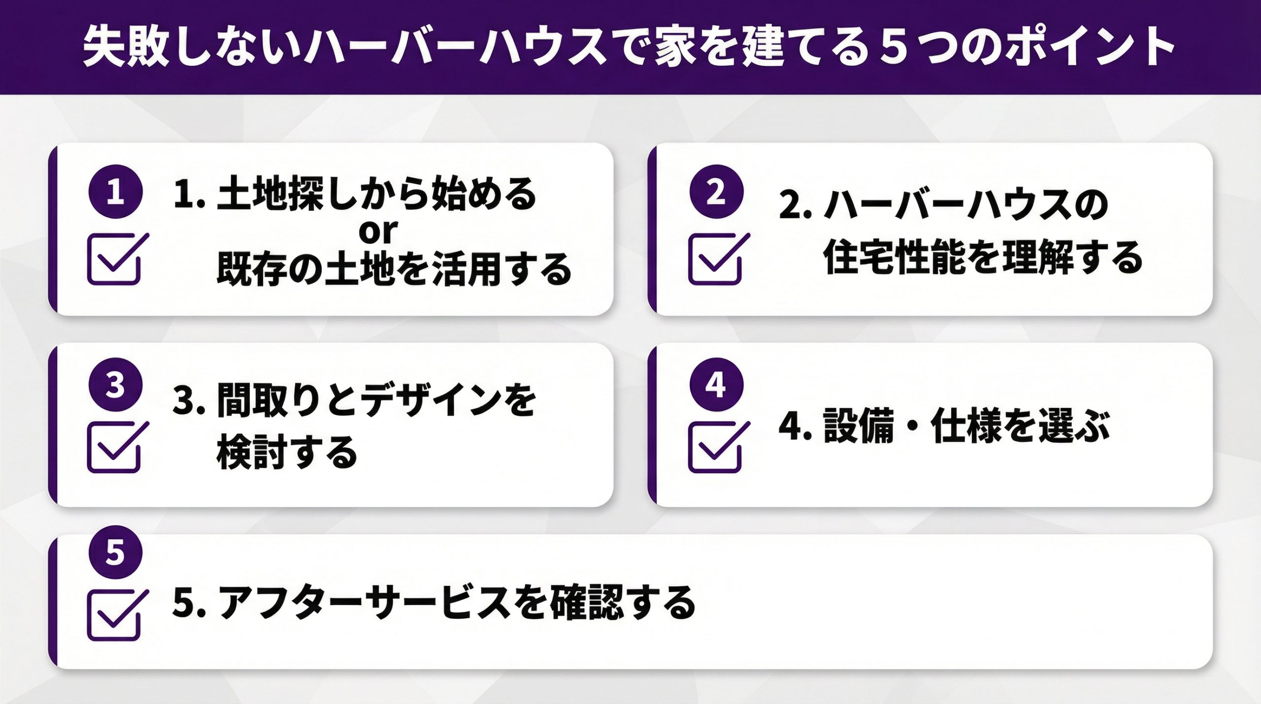 家づくりは、人生における大きな決断です。しっかりと準備を行い、ハーバーハウスの専門家と協力しながら、夢のマイホームを実現しましょう。
