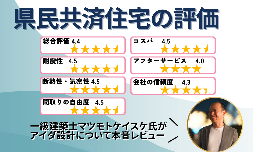 そんな県民共済住宅は、一級建築士である筆者による全体評価がこちら!