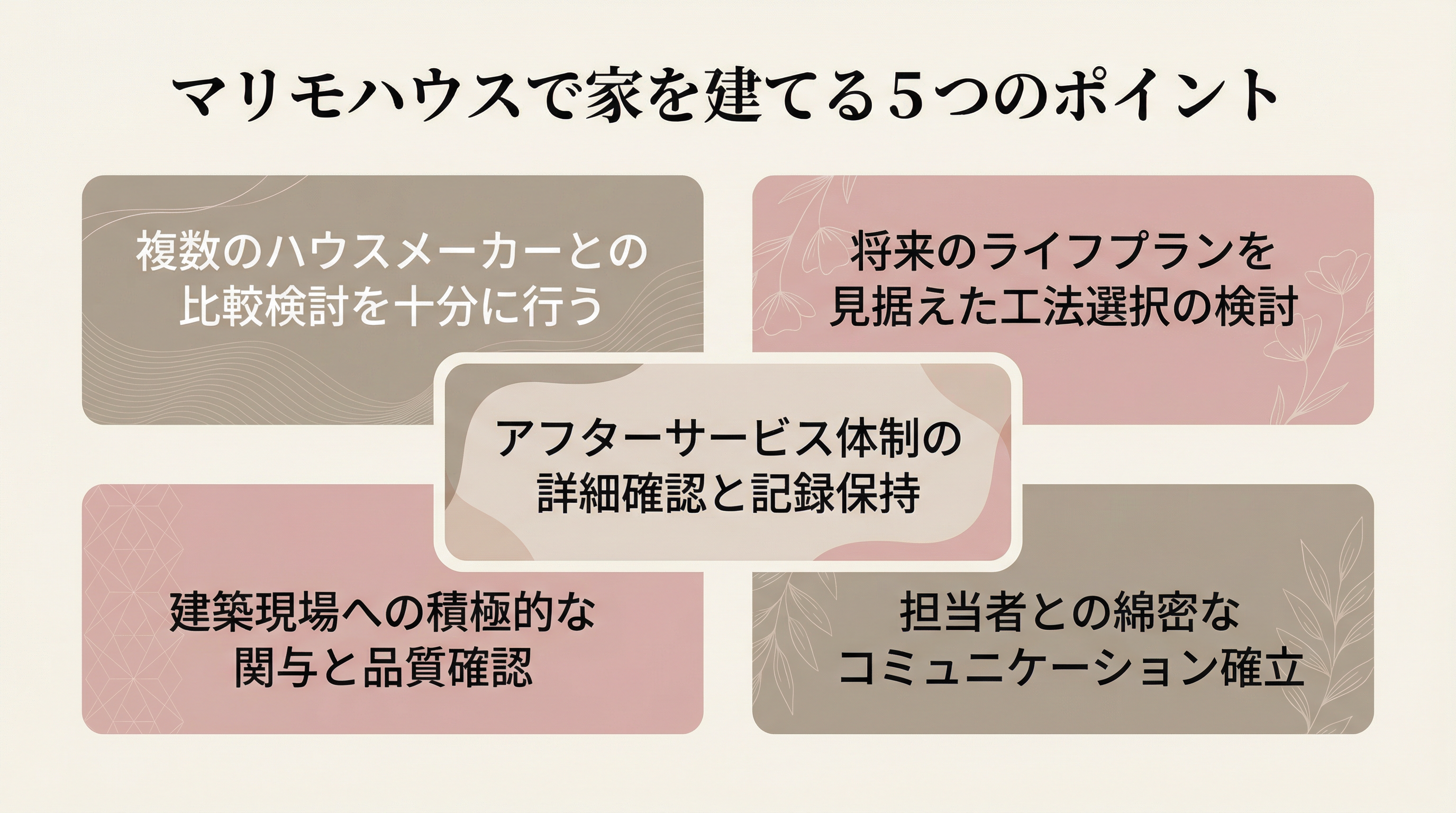 マリモハウスで理想の住まいを手に入れるためには、いくつかの重要なポイントを押さえておく必要があります。