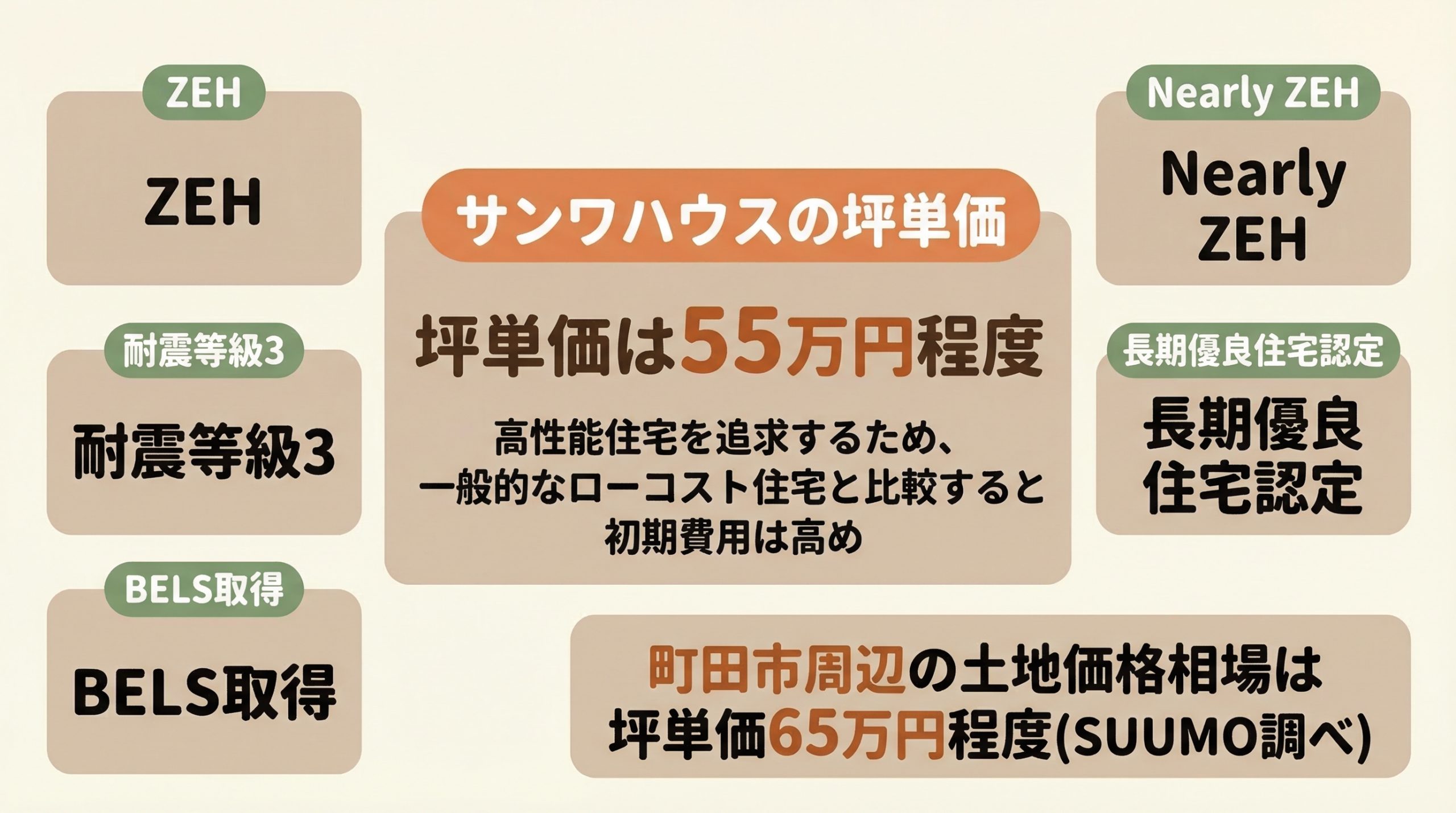 最も注意すべきは、予算管理の難しさです。サンワハウス自身も「ちょっと高いかもしれません」と明記しているように、ZEH基準や長期優良住宅仕様を実現するには、相応のコストがかかります。