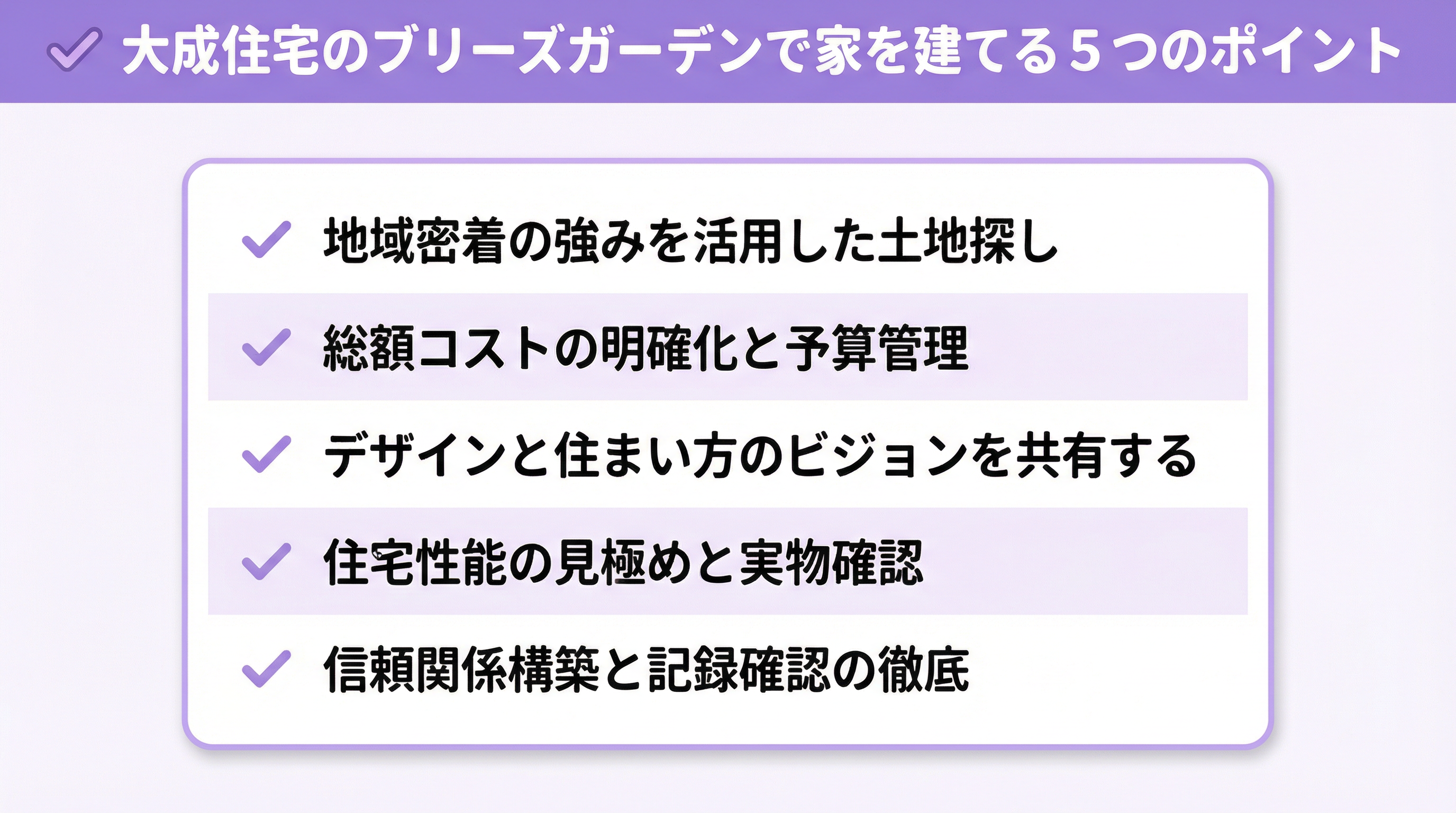 4. 失敗しない大成住宅のブリーズガーデンで家を建てる5つのポイント