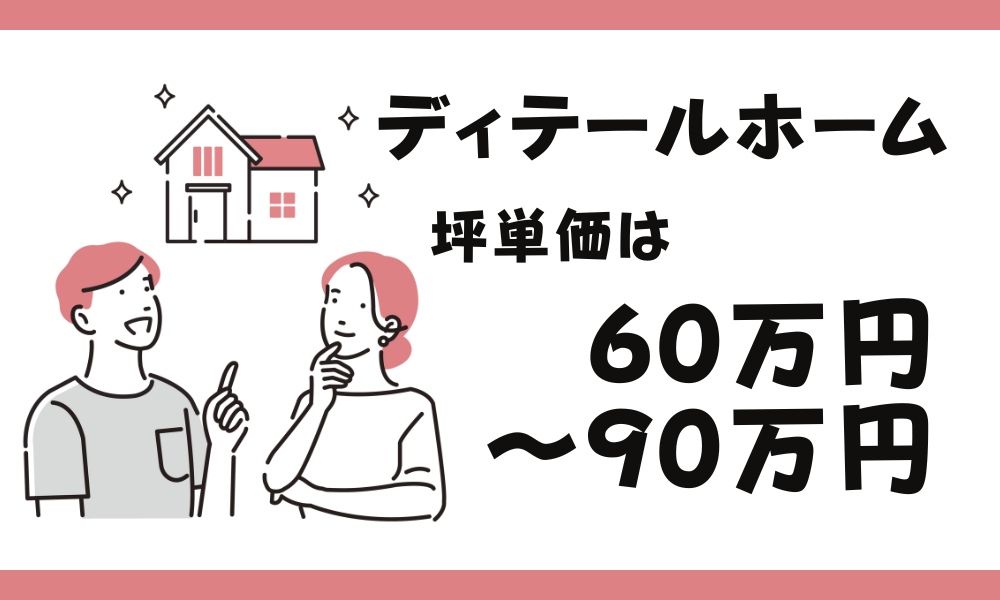 ディテールホームの公式サイトに掲載されている標準仕様の総額から算出した坪単価は60万円~90万円前後です。