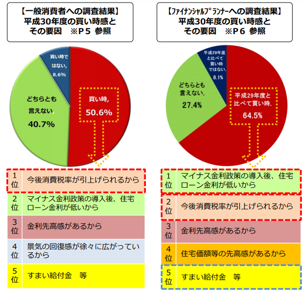 また資金計画のプロであるフィナンシャルプランナー(FP)についていうと、64.5%も「昨年よりも買い時である」と答えています。