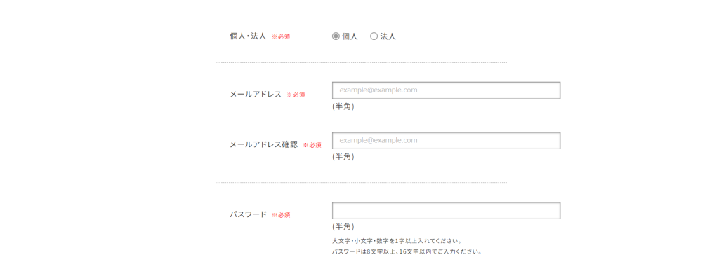 仮登録を行う際は、以下の情報を入力します。
