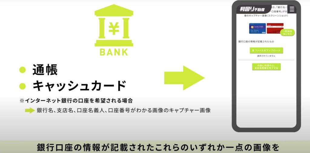 銀行口座情報が記載された通帳またはキャッシュカードの画像をアップロードした後、本登録の完了ボタンをクリックします。