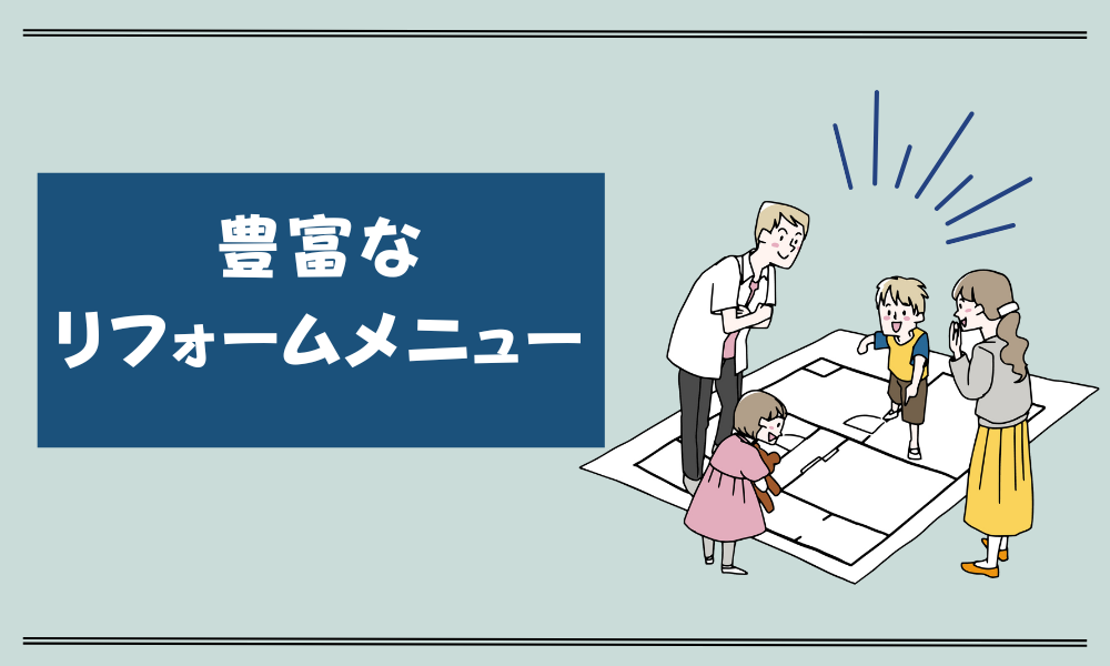 間取り変更や水回りリフォーム、外壁塗装など、様々なリフォームに対応可能です。