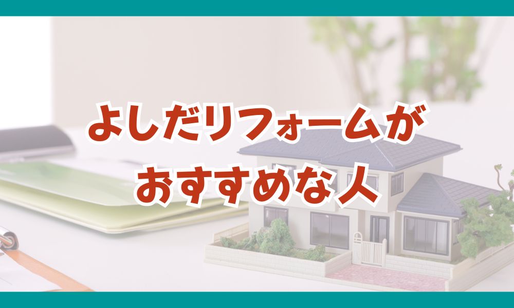 この記事では、よしだリフォームの特徴、サービス内容、口コミ・評判、費用相場、リフォームの流れよくある質問などを紹介しました。